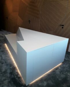 Pour la réalisation de ce dressing MT Design a pus compter sur le savoir faire de ses équipes et des performances de leurs machines à la pointe de la technologie. MT Design n’a pas de limite dans la création des formes. Notre atelier de Perwez étant suffisamment équipé nous pouvons répondre à toutes les exigences de nos clients.
